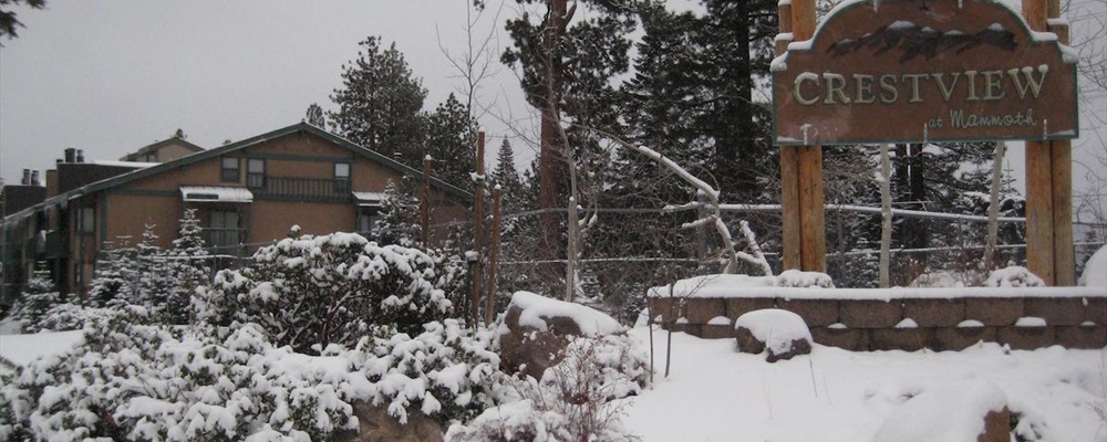 A cable TV with a DVD player, a sofa bed and a fireplace are offered in the living room at Crestview by Mammoth Reservation Bureau. Guests can cook a gourmet meal in the kitchen and have a sit down dinner in the dining area.
