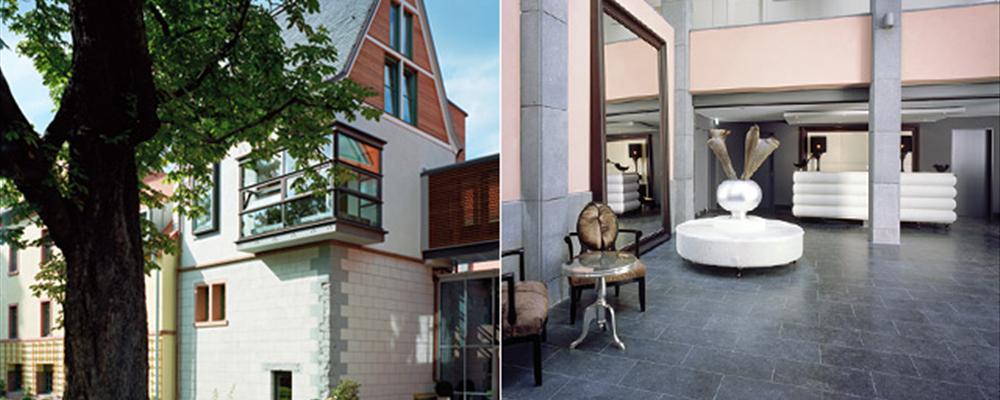 It’s unexpected for Frankfurt, a city perhaps better known for its skyscrapers. The interior, however, is perfectly suited to this fast-paced financial center. Public spaces are contemporary, mixing the clean lines and hard surfaces of modernism with some judiciously selected antique-style furnishings. And the style of the guest rooms is softened a bit, for easier living — still sharp and contemporary, with a predominance of white, but eclectic, warmer and more livable than the stark minimalism of the usual design boutique.
