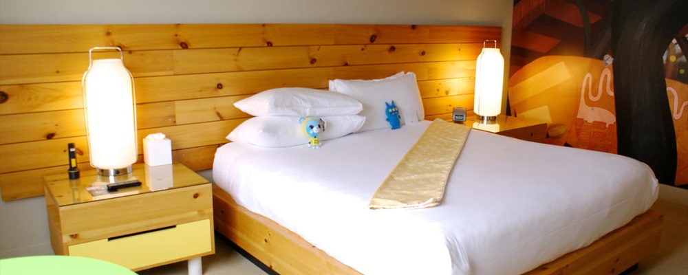 Contemporary guestrooms at Hotel Tomo are furnished with all of today's modern conveniences, including mini-refrigerators, flat-screen TVs, on-demand movies and games and unique J-pop wall murals. Enjoy on-site dining at Mums Restaurant and Bar, featuring all-you-can-eat shabu shabu.
