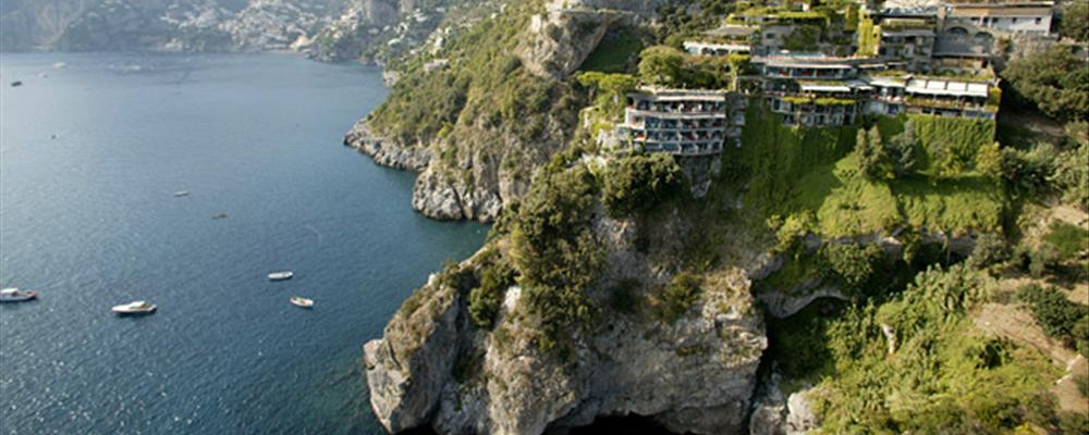 A small 17th-century chapel devoted to San Pietro marks the hotel entrance, and the rest of the property hangs on the cliffside below, each level descending the face like a staircase-perhaps a disquieting experience for those not comfortable with heights, but offering unparalleled views of the sea from every room and every terrace. The hotel is built just one room deep, and there are no inferior views; each room hugs the cliff at its back side and opens onto a private terrace at the front.