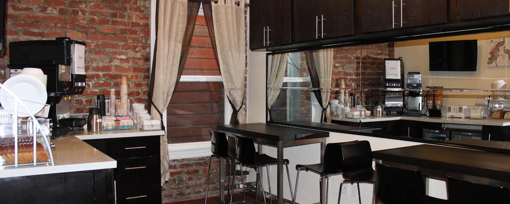 Styled in modern décor, each room provides a desk at the Inn on Folsom. Exposed brick walls, white linens, black furnishings and red accents are featured throughout. Access to a shared bathroom is offered for all rooms at Inn of Folsom.