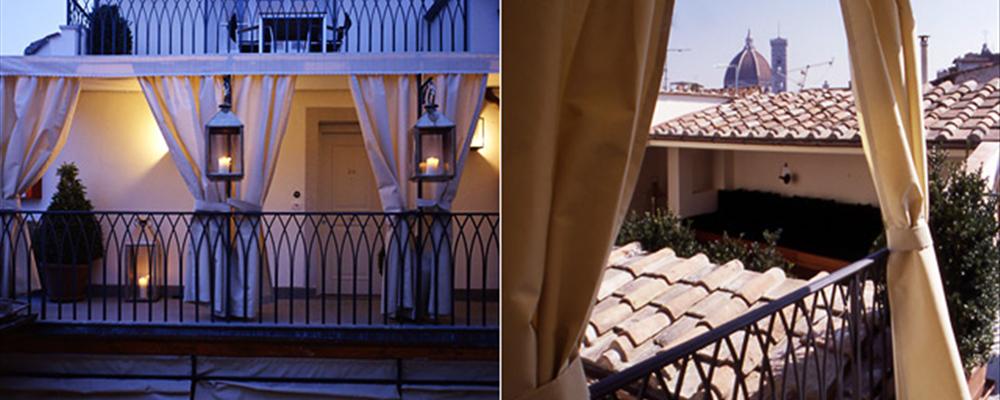The old courtyard, now glass-roofed, serves as the breakfast venue, and the rooftop terrace boasts a lounge bed from which to comfortably soak in the view. Dining is bed & breakfast only, though room service is available until 11pm, and any number of excellent restaurants lie within a few minutes’ walk from the front door; just bug the concierge for a recommendation, or strike out on your own-we hope you haven’t come to Florence to shut yourself in your hotel room all day.
