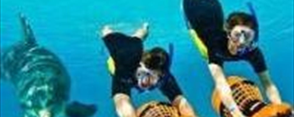 Deep Water Interaction: In the blue depths of Paradise Island’s Dolphin Cay, a one-of-a-kind aquatic adventure awaits. Limited to just six resort guests, this wide-open dolphin playground will be yours to explore. Snorkel and glide alongside a dolphin with a hand-held water scooter as they race you across the lagoon. Then the highlight of your deep water swim, our signature “foot push,” where you'll be propelled across the lagoon by a dolphin for memories that will never fade and rush unlike anything you’ve ever experienced. This unforgettable interaction will begin with an orientation and will include 30 minutes in Paradise Island’s deep water lagoon. Wetsuits, personal lockers, beach towels will be provided and you’ll enjoy all-day access to Dolphin Cay’s luxurious private beach.