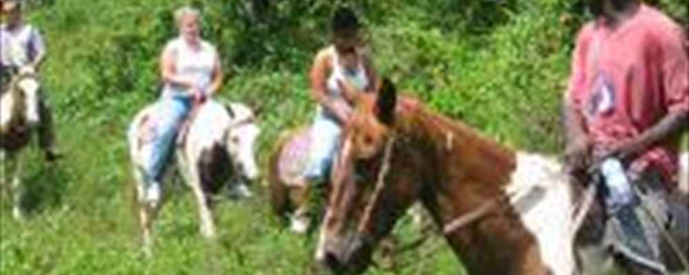 The guide will lead you into narrow trails and over gentle slopes amongst thick forestry bursting with vegetation in their natural habitat. Listen to chattering of monkeys and chirping of birds whilst perched on your horse. From a distance experience the magnificent view of villages and the Caribbean Ocean on the horizon. At some point the guide will ask you to dismount whilst you take a leisurely walk with your horse to examine the lush plant life in moist fertile soil covered with leaves and microorganism. The tour ends by riding leisurely back through the same path to one of our local neighborhood bars for cold drinks.