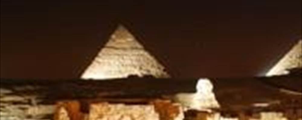 Pyramids Sound and Light Show in Giza. Lasers and light projections light up the Sphinx, the pyramids and the desert sands. Unforgettable sight of the pyramids floodlit at night. Entertaining Egyptian history told from the viewpoint of the Sphinx. English commentary.